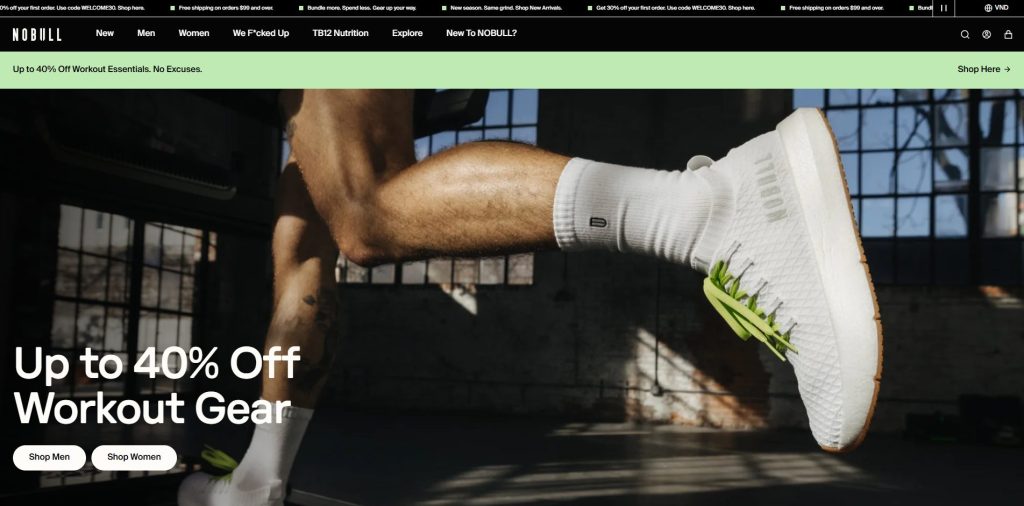 NOBULL is a brand focused on high-performance footwear and training apparel, targeted at committed athletes and those who train hard. Their e-commerce store uses Shopify Plus and emphasizes a no-nonsense aesthetic.