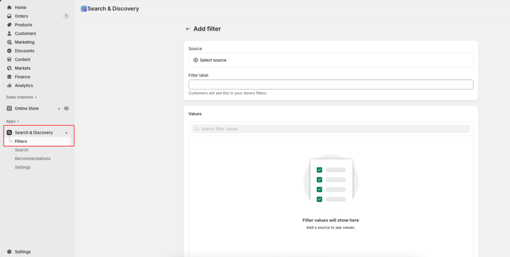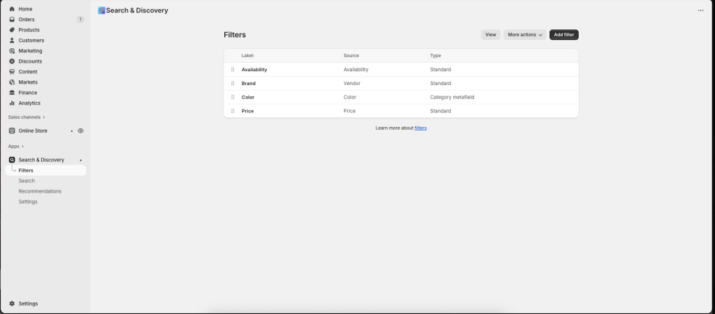You can add an app: Search & Discovery -> Open Filters -> Add filters and choose filters as you want.