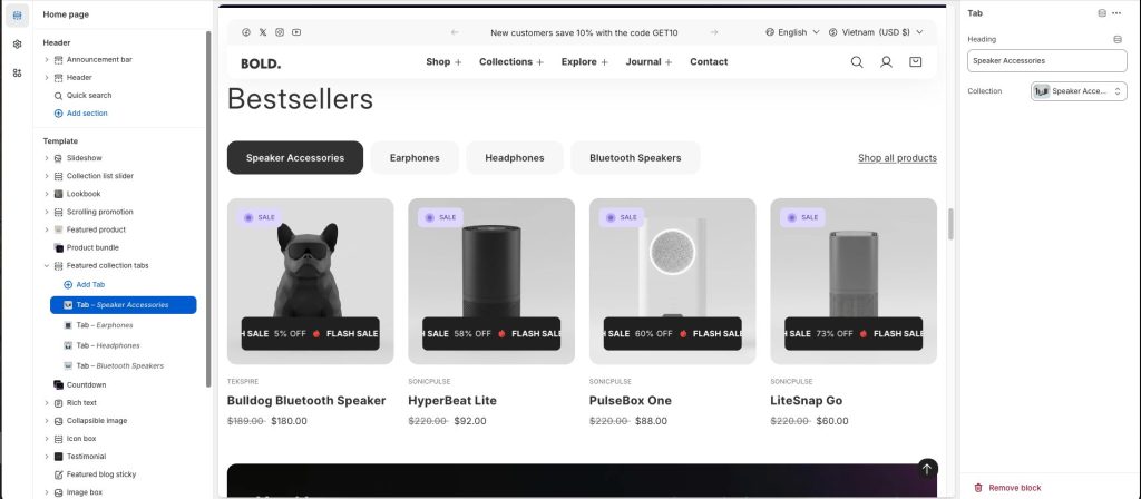 Configure your Featured Collection Tabs block: