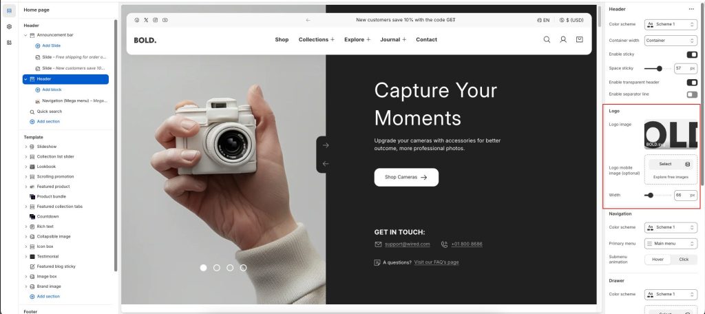 Logo image: Upload the image file of your logo in this area to set it globally on the header of every page.