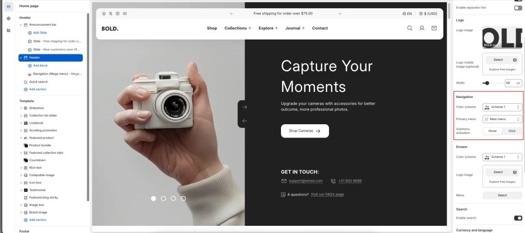 Enable Transparent Header: Enable the “Transparent Header” feature to make the header background transparent, creating a smooth effect with the background image behind.