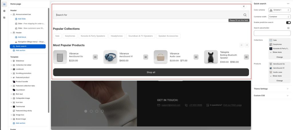 Search Placeholder: Set the text displayed in the search input field when no keyword has been entered. This placeholder text serves as a prompt or suggestion for what users can search for, improving user experience and making the search interface more intuitive.