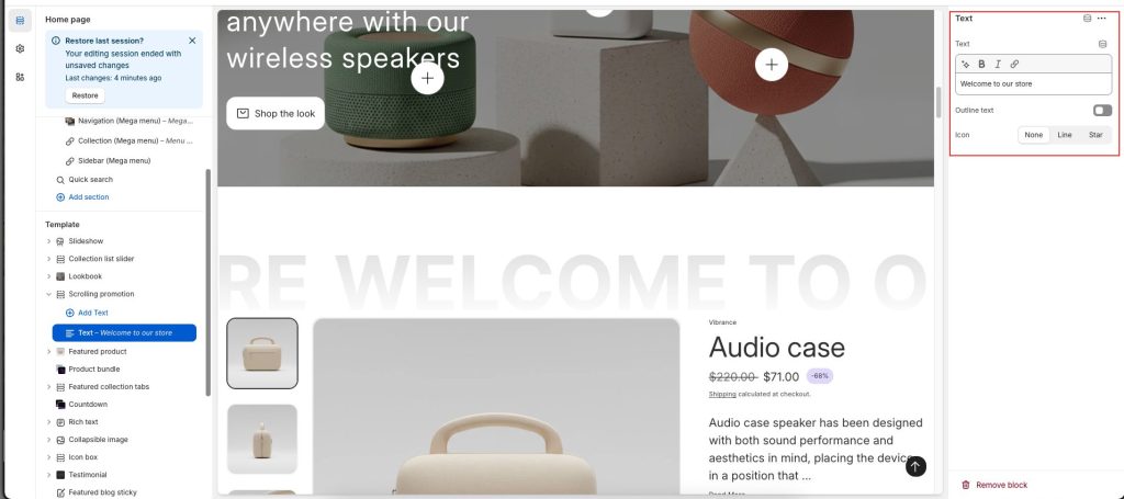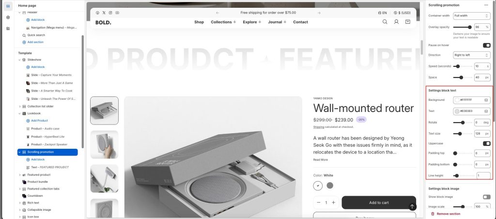 This section is to highlight the special text or image in a rotating form. Use the section to add an area with moving or scrolling text/image to a page.