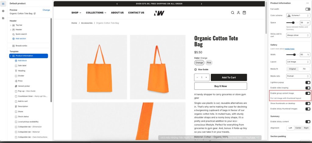 This feature helps you to display product images by variant group. For example: the pictures of products with the same color will be displayed together. You can refer to our demo (password: 1).