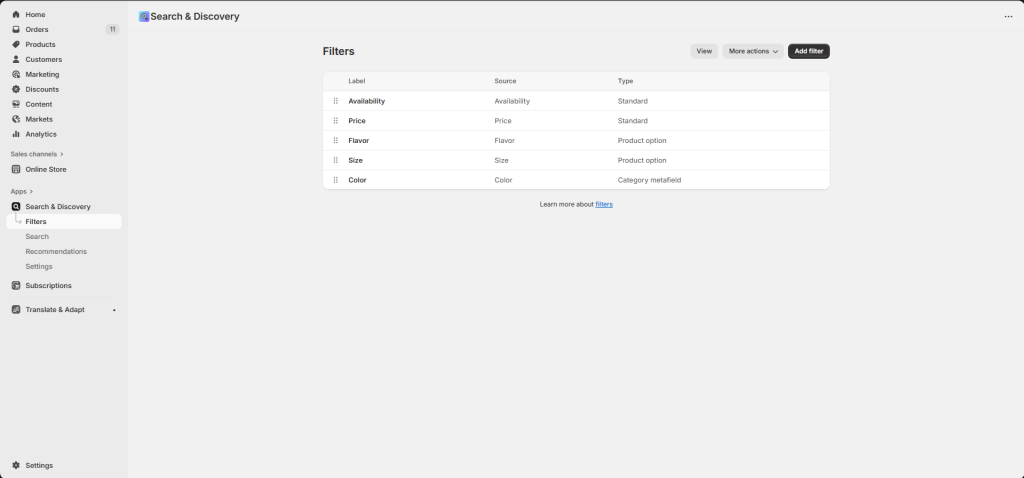 You can add an app: Search & Discovery -> Open Filters -> Add filters and choose filters as you want.