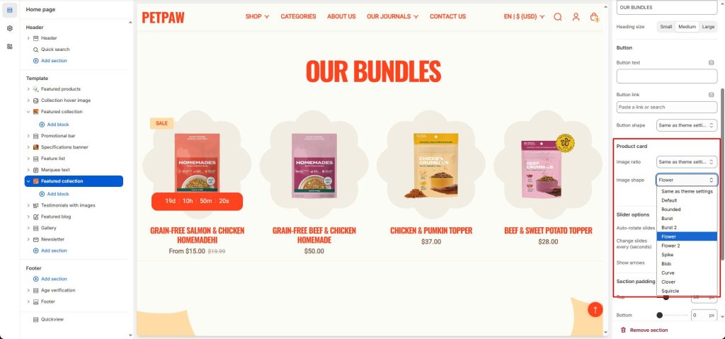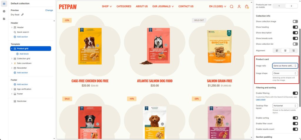 You can configure the product card in Theme settings -> Product card. This will apply to all your product cards.
