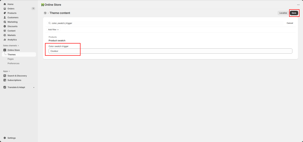 Change to “Couleur” and Save.