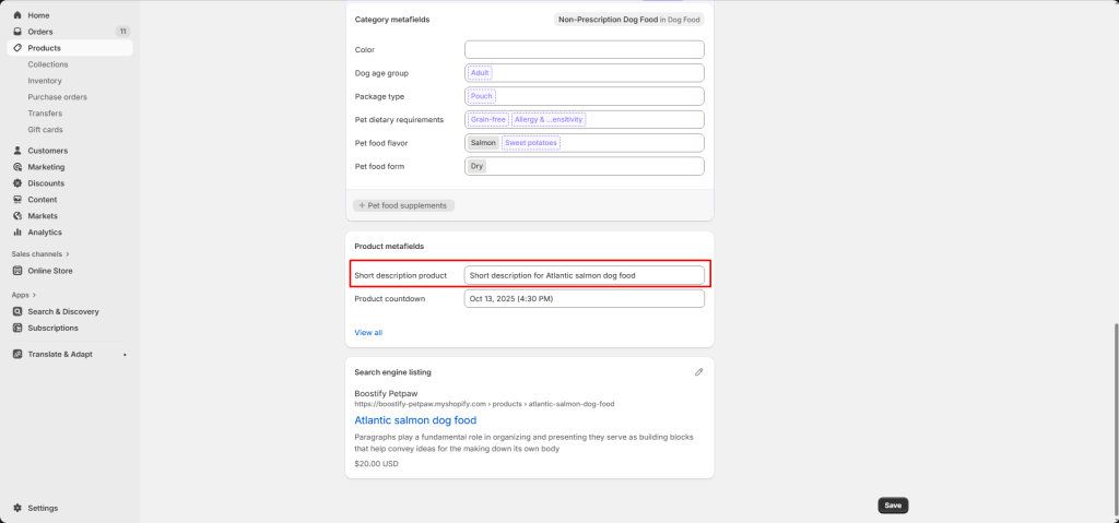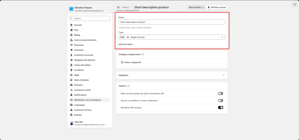 First, you need to create a Short description metafield in the Settings -> Metafields and metaobjects -> Products -> Add definition.