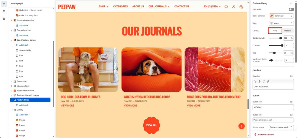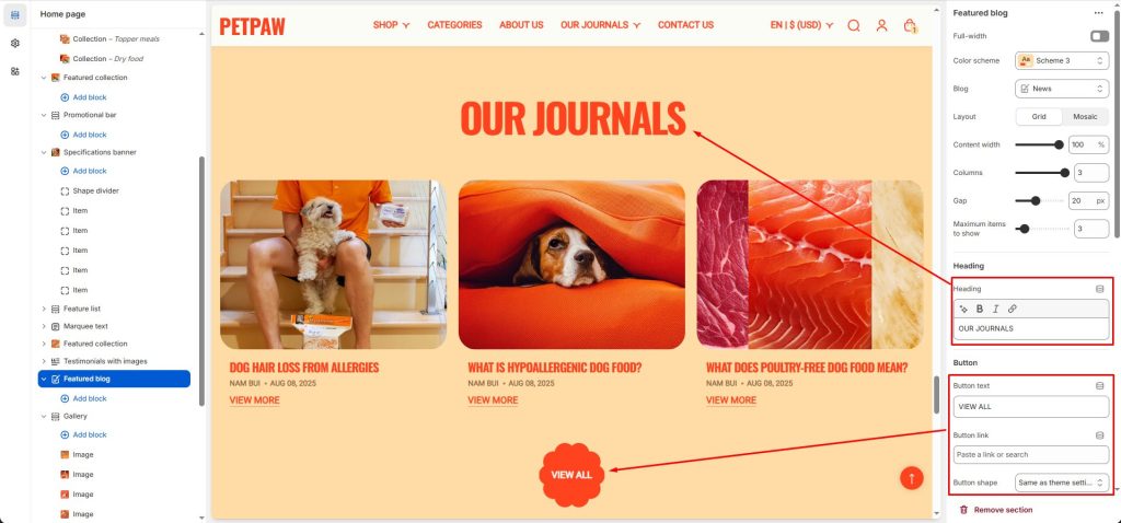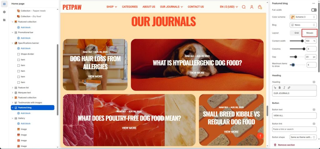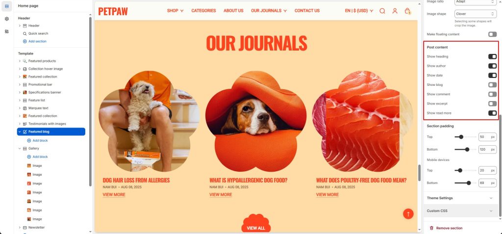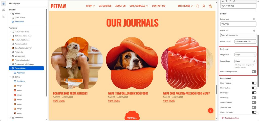 - Image shape: Change the shape of the blog image.