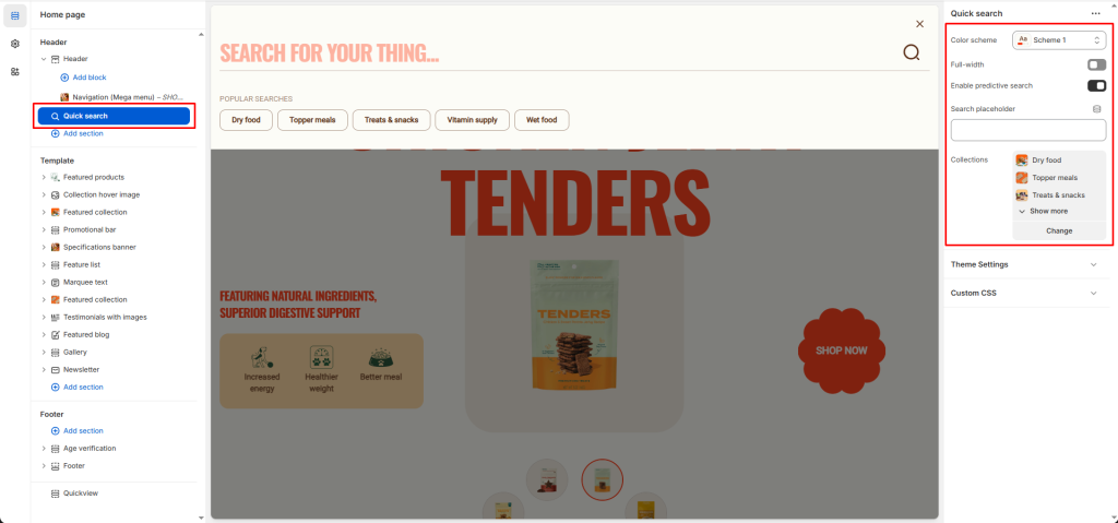 To customize the search form, you need to go to the Quick search section.