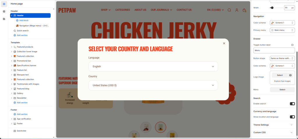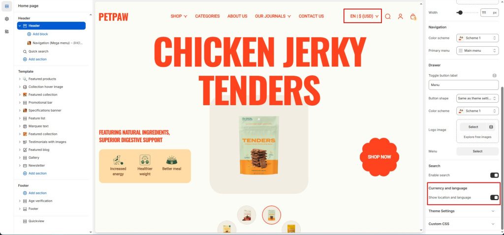 Show location and language: Enable/disable to change your currency and language.