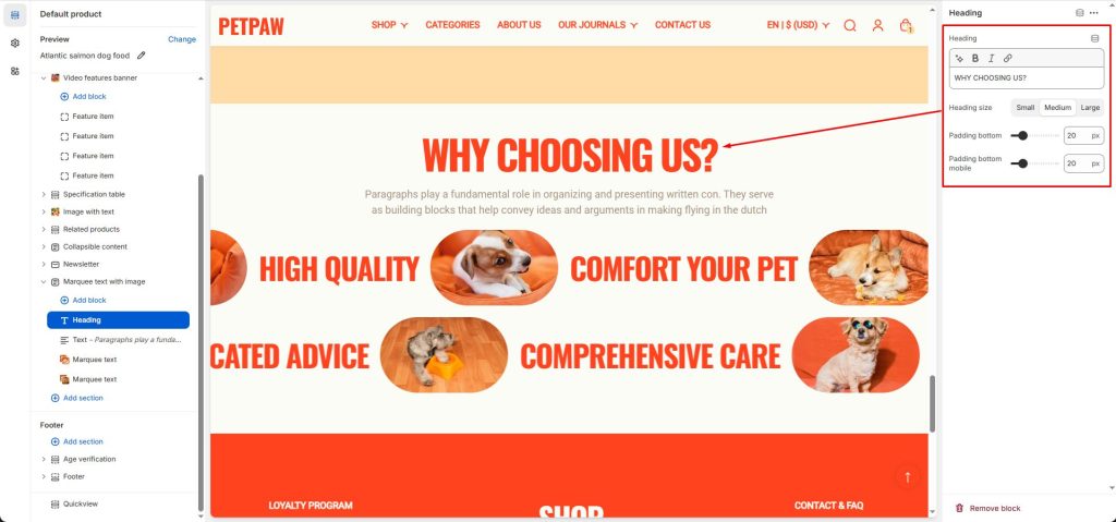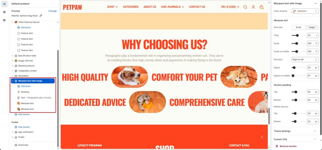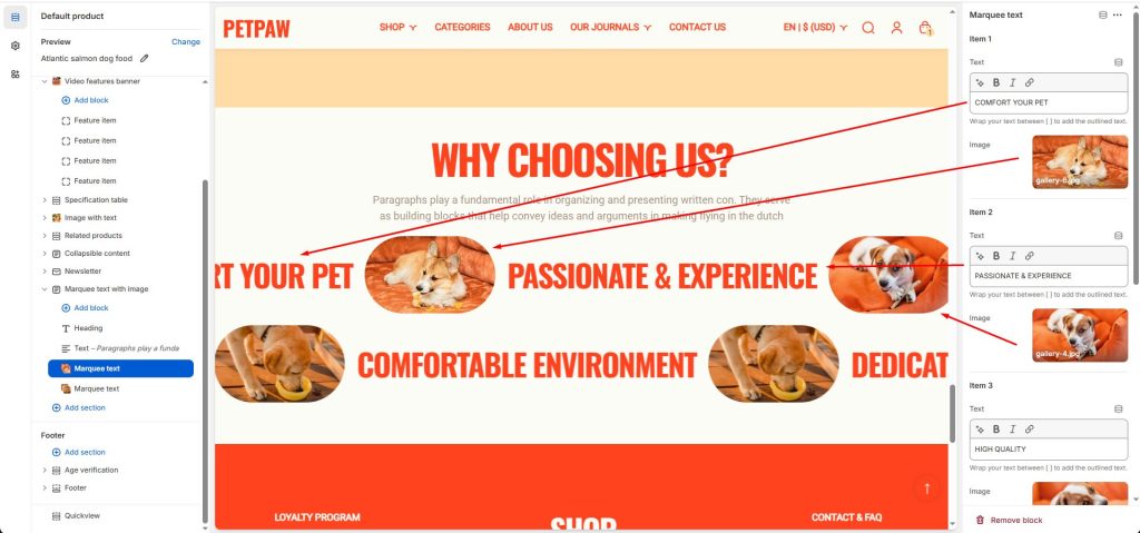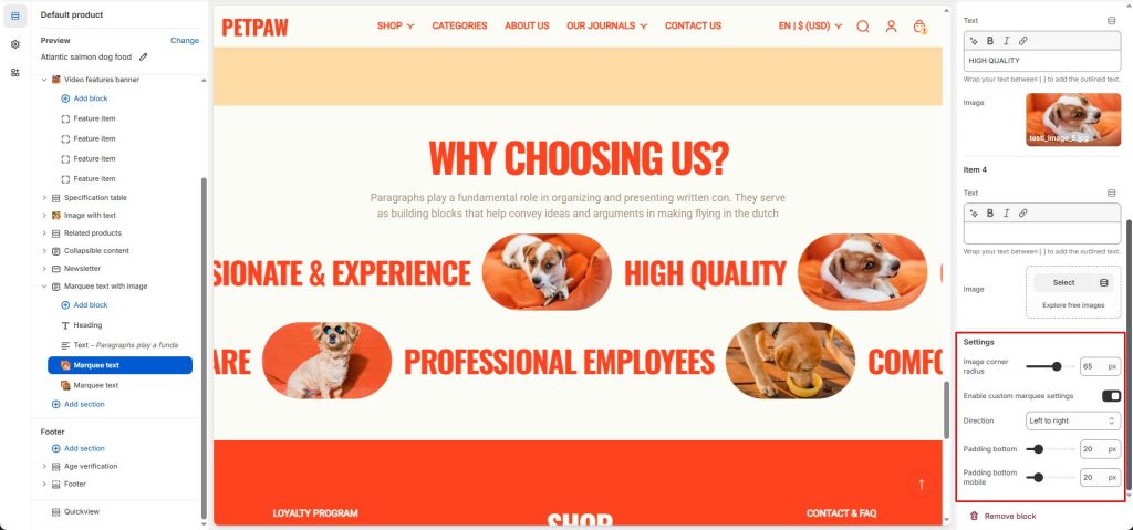 Marquee text with image This section is to highlight the special text and image in rotating form.Custom Time to run text, Font size, Scale, Direction, and Space between content.Blocks:HeadingTextMarquee textDoc navigation← Marquee textPromotional bar →