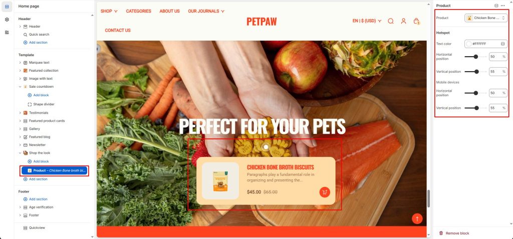 Horizontal/Vertical position: set the product position point on the image